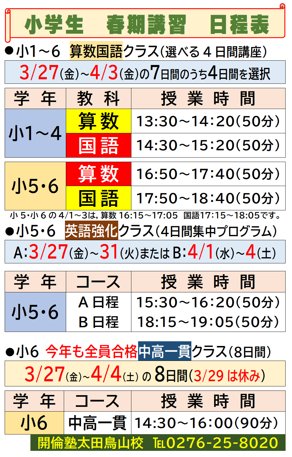 ご不明な点の確認やご入塾をご希望の際は、お電話にてお気軽にお問い合わせください。