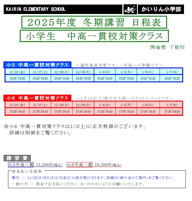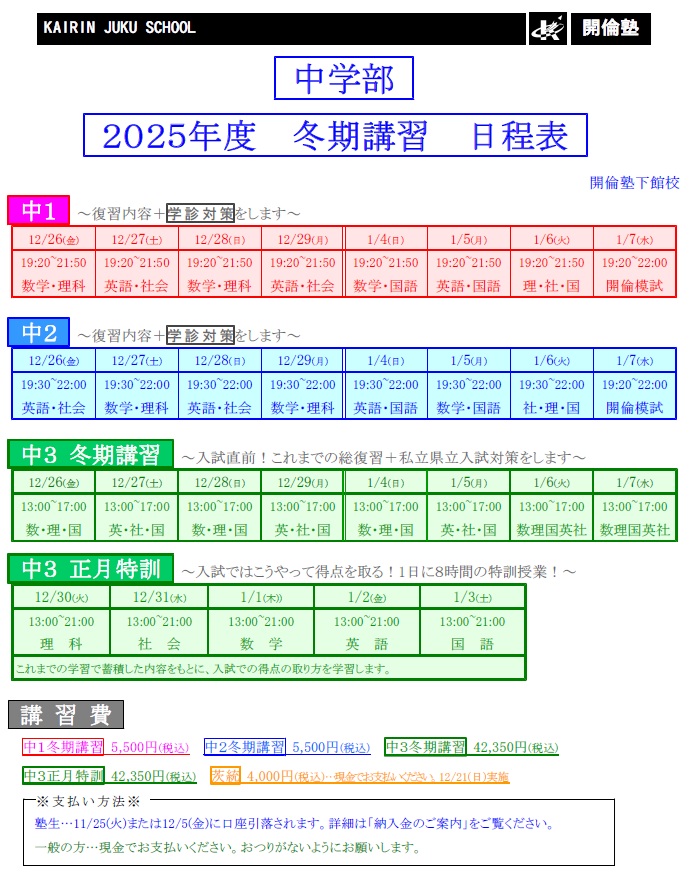 12月26日(金)から冬期講習が始まります。