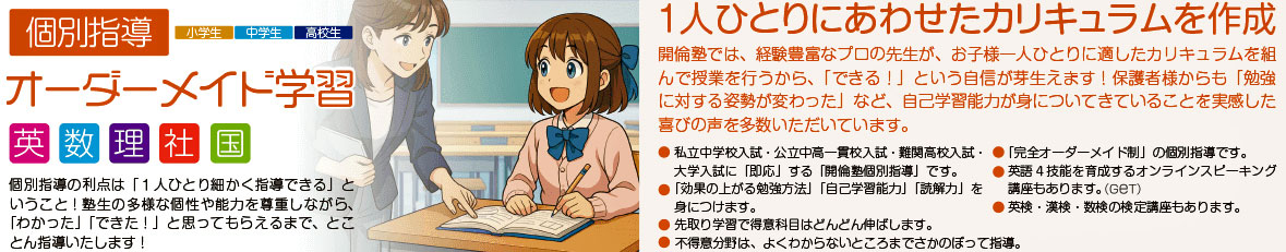 開倫個別足利西校は、足利市の小学校・中学校を主な対象とした地域密着型の学習塾です。