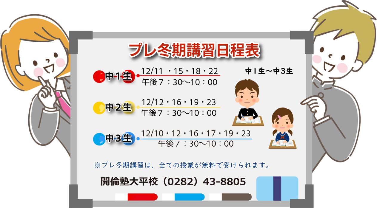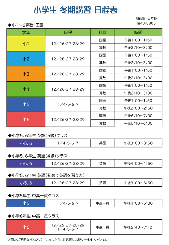 お電話でのお問合せ・お申込みは・・・開倫塾大平校 ☎43-8805