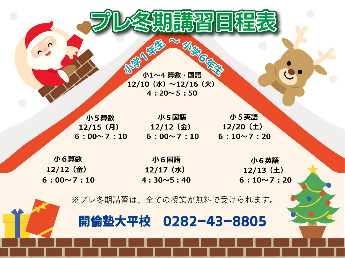 お申込みは 開倫塾大平校 ☎0282-43-8805まで