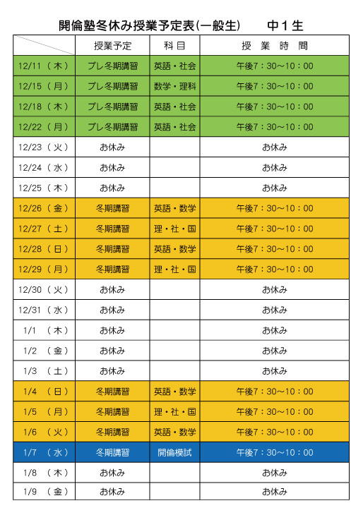 | 12月授業 | ③ | 12/7 | ④ | 12/21 | ||