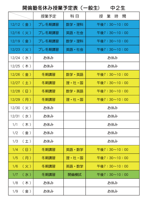 | 中学2年生 セミナー |