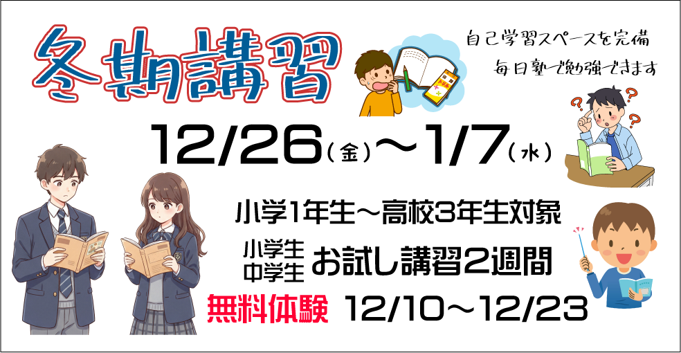 冬期講習に向けた体験授業を12月10日(水)から実施いたします。