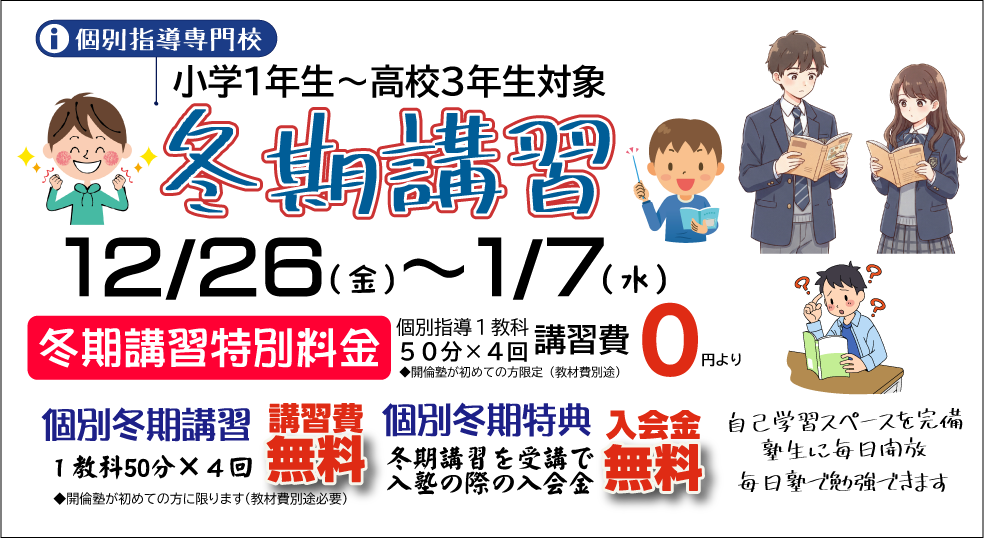 塾をお探しの方、勉強の仕方で悩んでいる方、無料体験をしてみませんか?