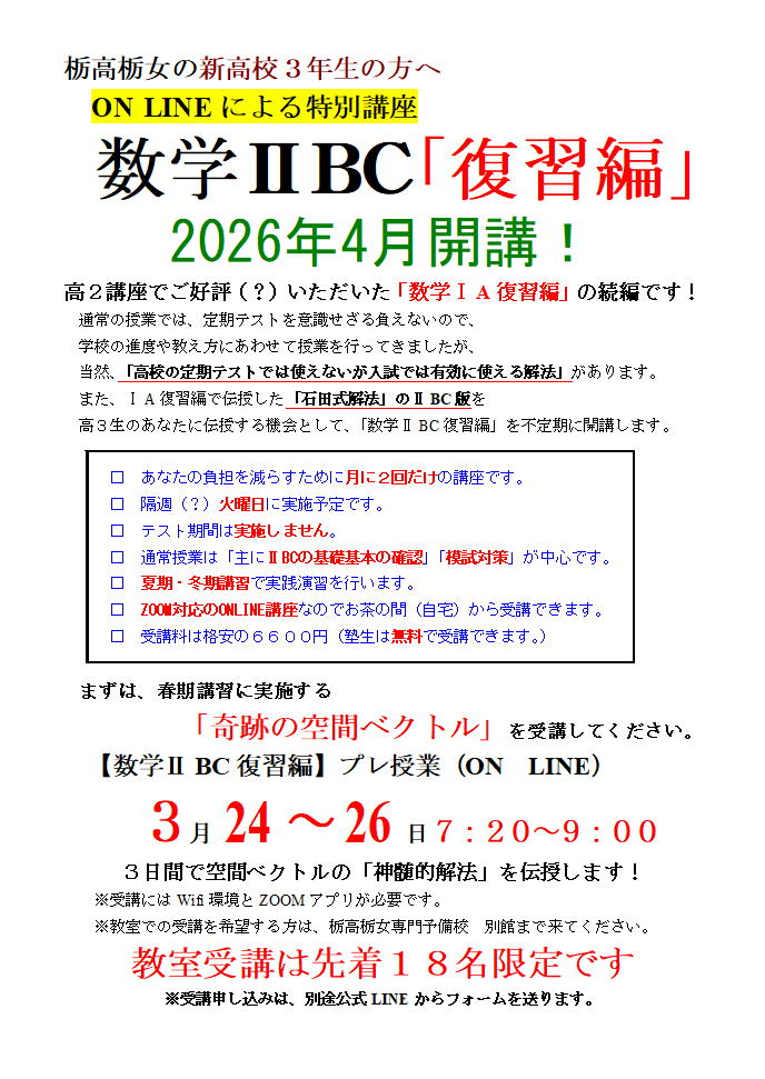 栃木高校・栃木女子高校の授業にあわせて指導します。