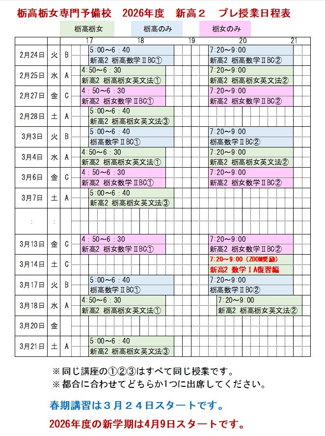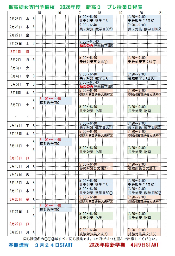 「栃木高校」「栃木女子高校」の授業に完全に合わせたカリキュラムです。