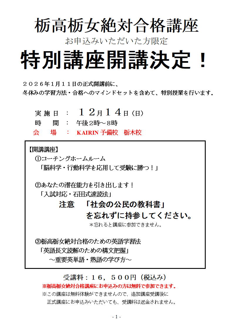 いよいよ授業のスタートです!受講の際にご持参いただくものは、ご入塾頂いた校舎よりご連絡いたします。