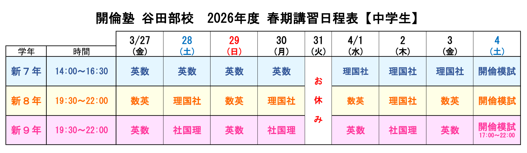 春期講習