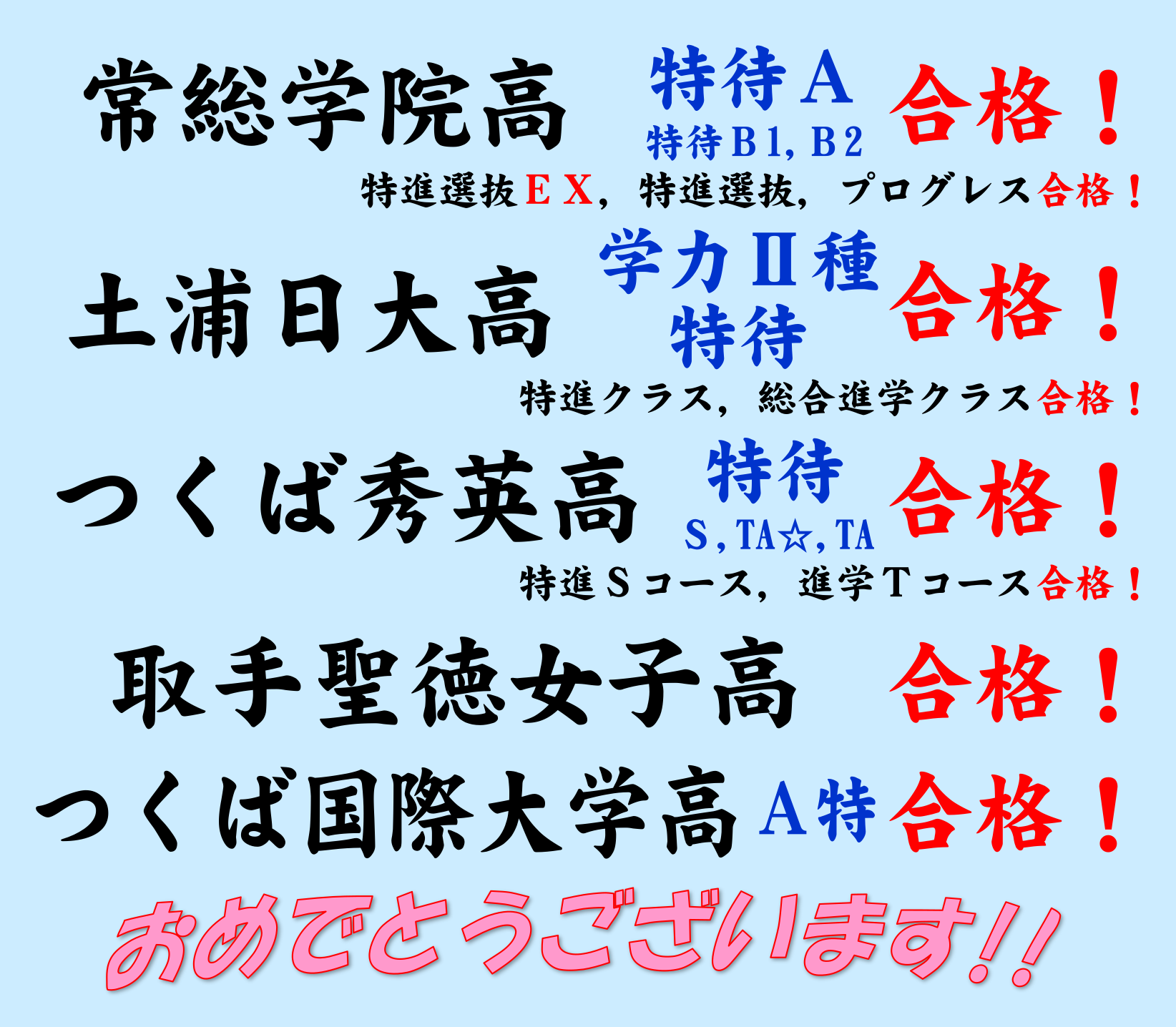 <私立高校 合格実績>
